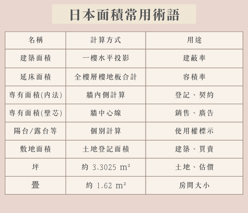 日本《不動產登記法》規定,所有公寓、華廈、區分所有建物,在登記時 必須使用內法面積。