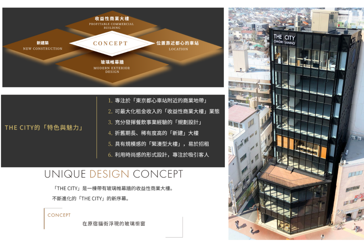 位於東京都心、鄰近車站的優質地段,「THE CITY」以高資產價值及卓越收益性為核心,兼具資本增值與租金收益,為投資者創造雙重獲利效益。