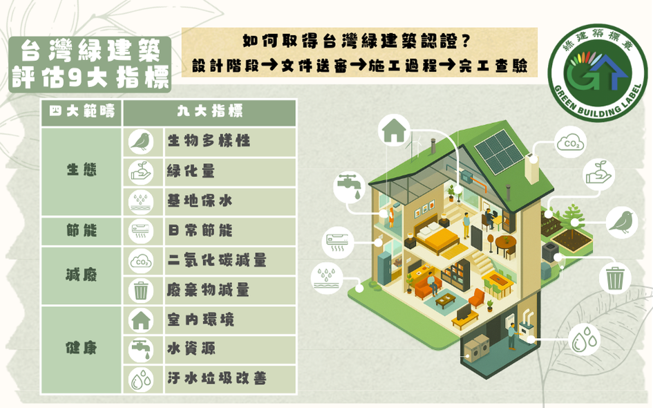 「綠建築」是以節能、減廢、低污染為核心,兼顧舒適與健康的建築設計理念。