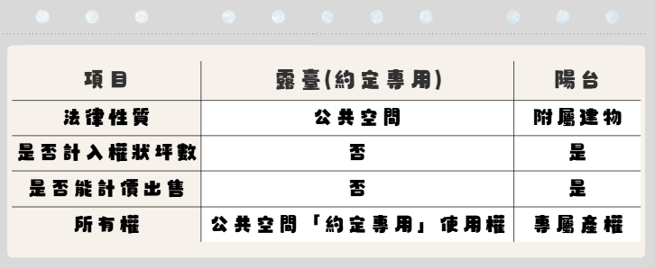 特別是「約定專用露臺」,經常被誤認為是專屬產權,導致違建、產權糾紛甚至影響貸款。