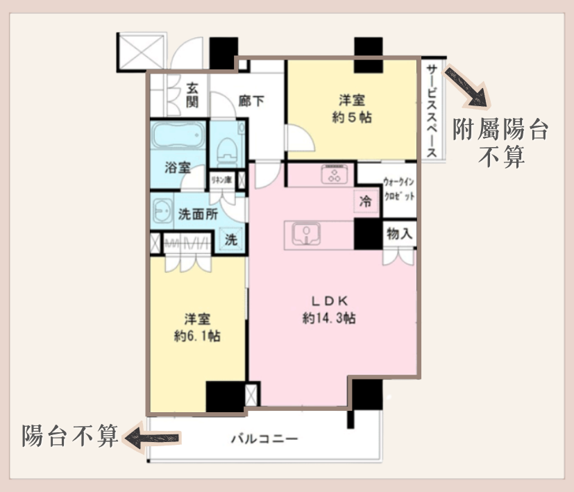 不含陽台的部分,也不含附屬陽台