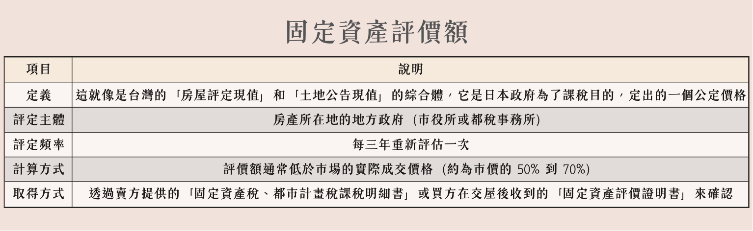 固定資產評價額是日本政府用來課稅的官方房價估值,並非成交價。